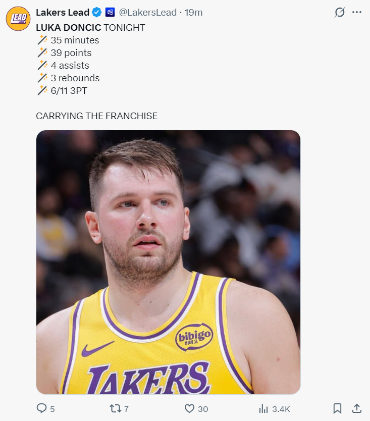 第二节东契奇登场三分不中后对迪亚巴特犯规,东契奇又冲着裁判喋喋不休,这一节东契奇6分钟里1中0没有得分,半场打完还是19分,也因为东契奇的沉寂湖人单节16-34直接崩盘。湖人从领先9分到落后9分实在是太过于迅猛。
