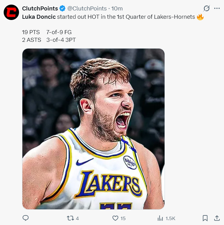 这场比赛第一节的东契奇是火力全开,各种的慢三步突破,外线的撤步三分,翻身跳投,首节12中7+三分4中3+罚球4中2拿到19分2助攻,命中率58.3%,已经扫去上一场16中7手感不佳的阴霾。